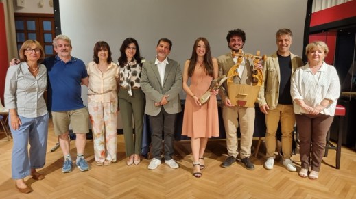 La regista Brigida Gullo con il premio Cinema archeologico del RAM film festival 2024 assegnato dalla giuria tecnica per il film “Come un fulmine nell’acqua. I bronzi di San Casciano dei Bagni” (foto graziano tavan)