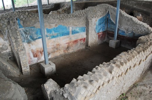 Tracce di affreschi antichi negli ambienti di Villa Sora, area archeologica a Torre del Greco (foto mic)