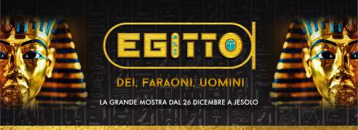 Il logo della mostra “Egitto. Dei, faraoni, uomini” che Jesolo ospita dal 26 dicembre 2017 al 15 settembre 2018: prorogata al 30 settembre 2018