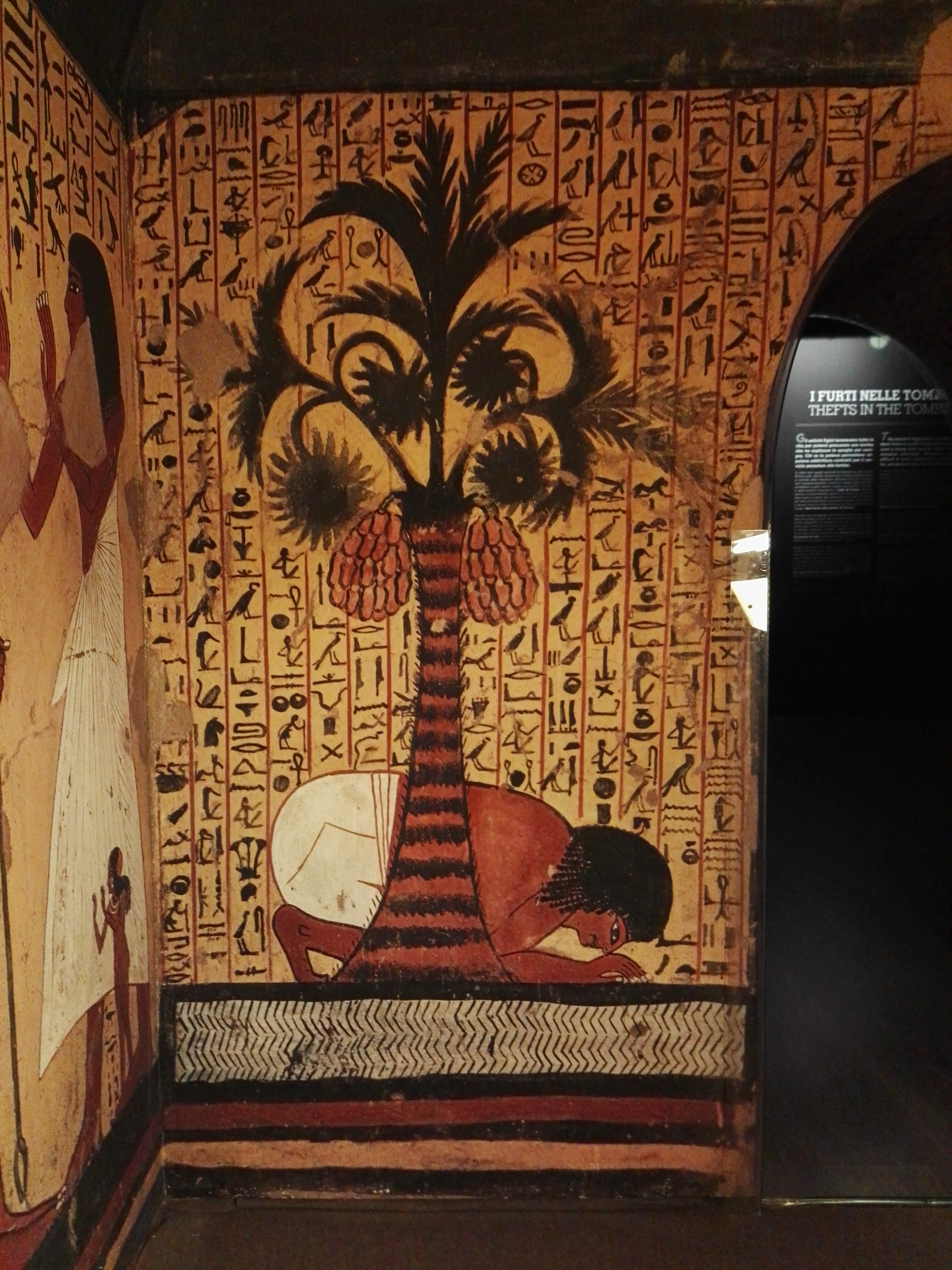 Pashed possedeva una tomba al limite del villaggio (quella che oggi conosciamo come la Tomba 3), e una seconda cappella (la numero 326). La tomba affrescata di Pashed fu individuata nel 1834 da un gruppo di soldati di leva dell’esercito egiziano: quindi ben settant’anni prima che il grande egittologo italiano Ernesto Schiaparelli portasse alla luce – era il 1905 – il villaggio di Deir el-Medina. La ricostruzione di quella tomba, che l’artista scozzese Robert Hay visitò subito dopo la scoperta nel 1834 e ne riportò su tavole di disegno le ricche pareti affrescate, è ora possibile vederla nella mostra di Jesolo.