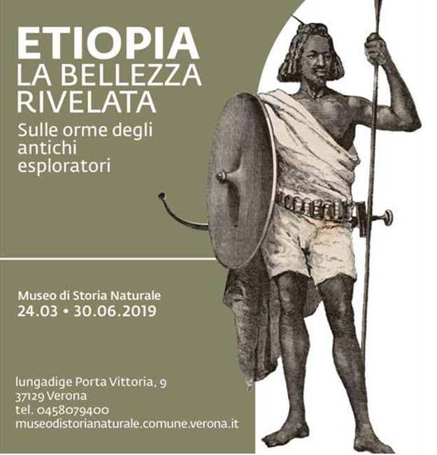 La locandina della mostra “Etiopia. La bellezza rivelata” al museo di Storia naturale di Verona dal 24 marzo al 30 giugno 2019