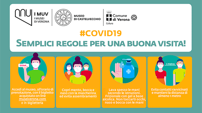 Dal 4 al 26 marzo 2021 sarà dunque possibile accedere gratuitamente a tutti i musei civici e, con l’occasione, ammirare le numerose proposte espositive in essi realizzate. Inoltre, nella direzione di garantire maggiori opportunità ai visitatori, i musei civici, a partire da oggi, 1° marzo 2021, ampliano il loro orario di apertura, con la possibilità di ingresso fino alle 19. Nello specifico, da lunedì a venerdì, dalle 12 alle 19 (ultimo ingresso alle 18.30), possibilità di visita alla Galleria d’Arte Moderna “Achille Forti” (Gam), al museo di Castelvecchio, al museo di Storia Naturale e al museo degli Affreschi G. B. Cavalcaselle alla Tomba di Giulietta. Quest’ultimo, di nuovo accessibile, al termine dei lavori di sistemazione. La Casa di Giulietta, invece, per consentirne la massima fruibilità possibile, può essere visitata dal lunedì al venerdì, dalle 9 alle 19 (ultimo ingresso alle 18.30). Per lavori, restano temporaneamente inaccessibili al pubblico il museo Archeologico al Teatro Romano e il museo Maffeiano. Tutte le regole per una visita in sicurezza dei musei al link https://museodicastelvecchio.comune.verona.it/nqcontent.cfm?a_id=69827. Fino al 26 marzo 2021 non è più obbligatoria la prenotazione. Come previsto dall’attuale Dpcm, i musei resteranno chiusi durante il weekend, da sabato a domenica. Se poi dal 27 marzo, come per ora solo ipotizzato, i musei saranno aperti anche nel weekend, tornerà obbligatoria la prenotazione obbligatoria on line. E il Comune ha già annunciato che saranno previsti costi di ingresso promozionali.