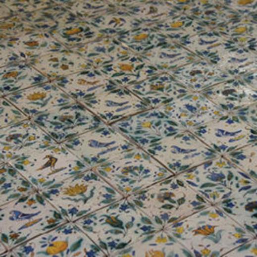 Le mattonelle in maiolica policroma alla Turchesca nella Giunta Albertiana del Castello del Buonconsiglio (foto Buonconsiglio)
