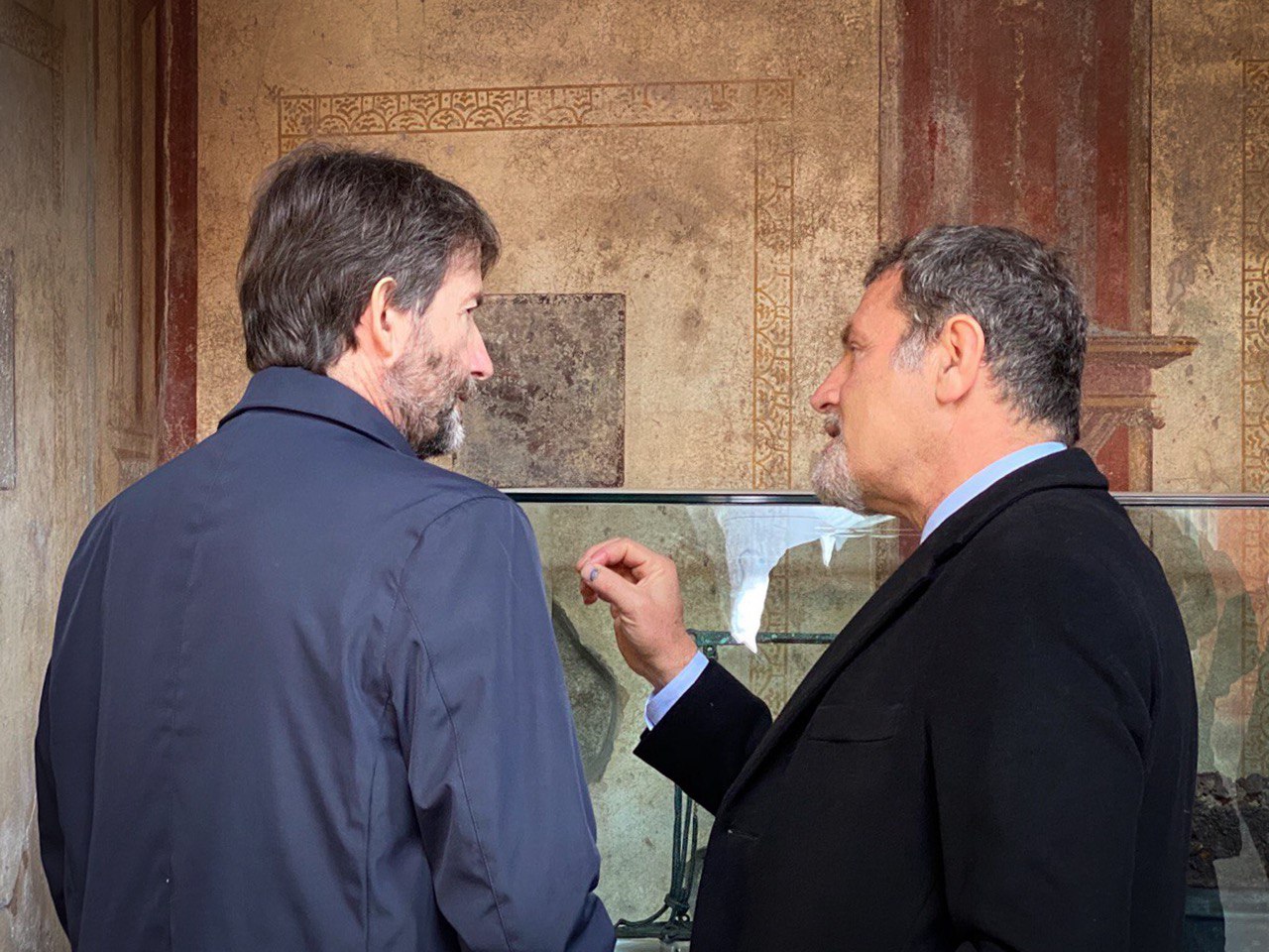 A villa Arianna: da sinistra, Francesco Muscolino (direttore scavi), Alfonsina Russo (direttore ad interim Pompei), Gaetano Cimmino (sindaco Castellammare); Mauro Cipolletta (direttore Gpp) (foto Parco archeologico Pompei)