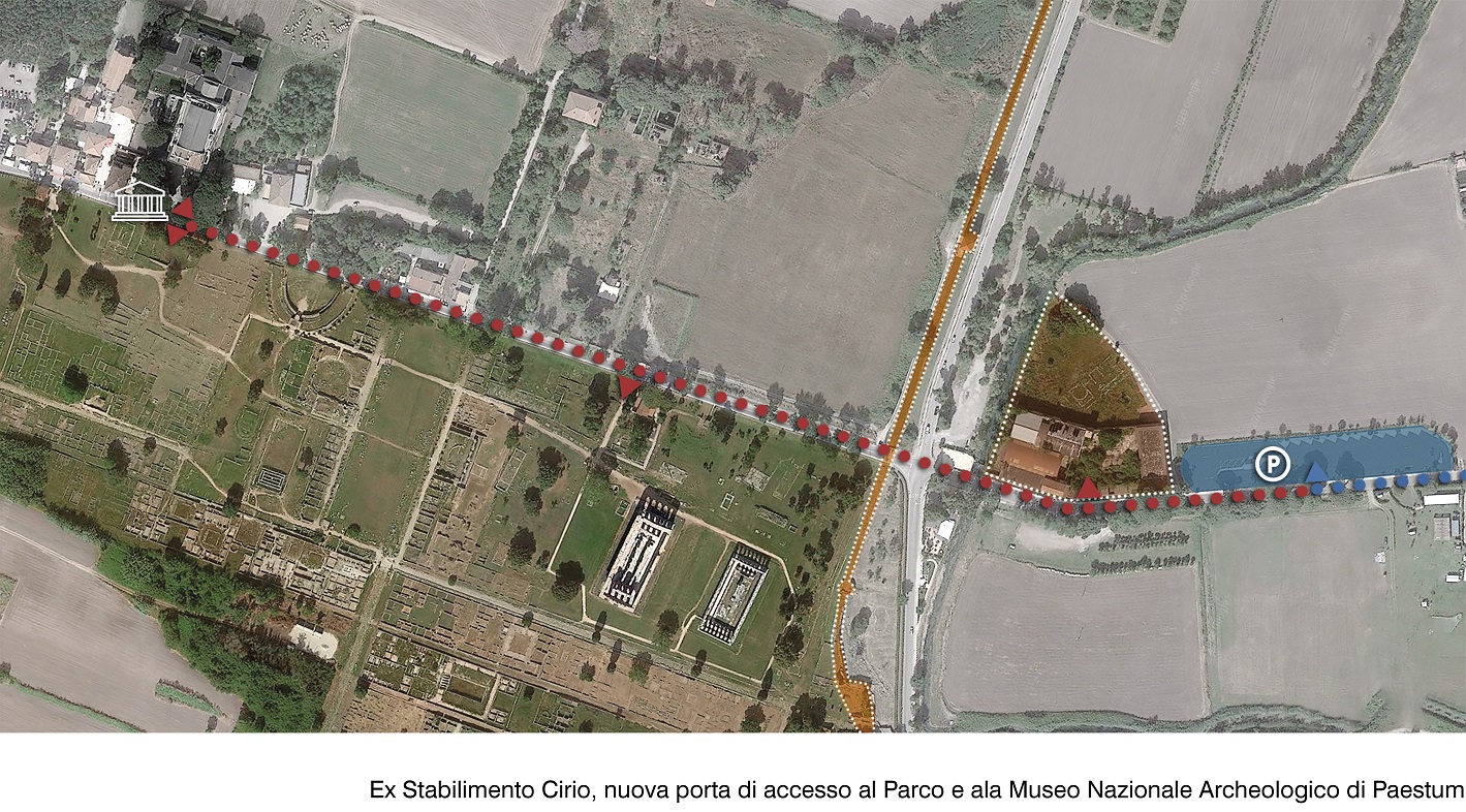 Il progetto del nuovo accesso al parco archeologico di Paestum, dall’ex stabilimento Cirio con l’area del santuario di Santa Venera fino al museo Archeologico nazionale di Paestum (foto Pa-Paeve)