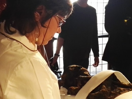 La prof.ssa Paola Zanovello, curatrice della mostra, illustra i reperti della collezione egizia dell’Accademia dei Concordi di Rovigo (foto Graziano Tavan)