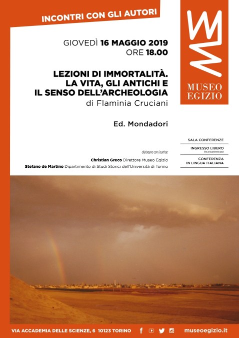 Poetessa e archeologa, Flaminia Cruciani ha fatto parte per diversi anni della Missione archeologica italiana a Ebla, in Siria. Con Ebla “gli italiani hanno scoperto una nuova lingua, una nuova cultura e una nuova storia” ha affermato Ignace J. Gelb, uno dei maggiori assiriologi americani del Novecento. Ma l’ultimo libro che ha scritto, “Lezioni di Immortalità. La vita, gli antichi e il senso dell’archeologia”, che giovedì 16 maggio 2019, alle 18, presenta nella sala conferenze del museo Egizio di Torino, non è propriamente un manuale di archeologia, e non è neppure un diario di viaggio o di avventure. È il racconto sincero e appassionato della più bella lezione di immortalità che Flaminia Cruciani abbia ricevuto dalla vita: l’archeologia in quella terra millenaria che è la Siria con la sua straordinaria gente. Dalla preparazione del viaggio all’organizzazione delle attività di scavo, dal rapporto con la popolazione locale alle numerose difficoltà della vita nel deserto, grazie a un linguaggio poetico e fortemente evocativo, l’autrice ci restituisce l’emozione di un lavoro tanto affascinante. Se l’antico sopravvive attraverso le rovine, che sono l’opera d’arte della natura, e attraverso i reperti, l’archeologia forse è il momento supremo, il kairos, dell’immortalità. “Mi è sembrato importante scrivere questo libro adesso, perché l’archeologia è l’unico modo di comprendere il presente. Per non dimenticare la Siria, terra di prodigi originari”. Alla presentazione del libro, dialogheranno con l’autrice il direttore Christian Greco e il professor Stefano de Martino (dipartimento di Studi storici dell’università di Torino). Ingresso libero in sala conferenze fino a esaurimento posti. Al termine della conferenza sarà possibile acquistare il volume “Lezioni di immortalità. La vita, gli antichi e il senso dell’archeologia” di Flaminia Cruciani.
