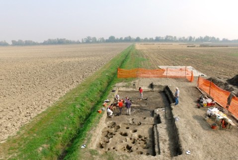 Era il 1967 quando i soci del Centro Polesano di Studi Storici Archeologici ed Etnografici di Rovigo (Cpssae) scoprirono nelle campagne a sud-est dell’attuale centro di Fratta Polesine, in provincia di Rovigo, l’abitato di Frattesina, villaggio protostorico sorto nel XIII secolo a.C. (Bronzo recente) che si estendeva per oltre 20 ettari (come mostra il video qui sopra del 2017 di Michele Baldo) lungo la riva destra del Po di Adria, il maggiore ramo del fiume durante l’età del Bronzo. Frattesina conobbe la sua massima fioritura nel XII-XI sec. a.C. (Bronzo finale) seguita da una fase di decadenza fino all’inizio dell’età del Ferro (X sec. a.C.). Nel 50° anniversario della scoperta di Frattesina, al museo dei Grandi Fiumi di Rovigo dal 13 al 15 aprile 2018 il Cpssae promuove il convegno internazionale “Frattesina cinquant’anni dopo. Il Delta del Po tra Europa e Mediterraneo nei secoli attorno al 1000 a.C.”. Un convegno che è già un successo a due settimane dalla sua apertura: gli organizzatori avvisano che per le giornate del 14 e 15 aprile non si accettano ulteriori iscrizioni, per superamento degli iscritti rispetto alla capienza della sala.