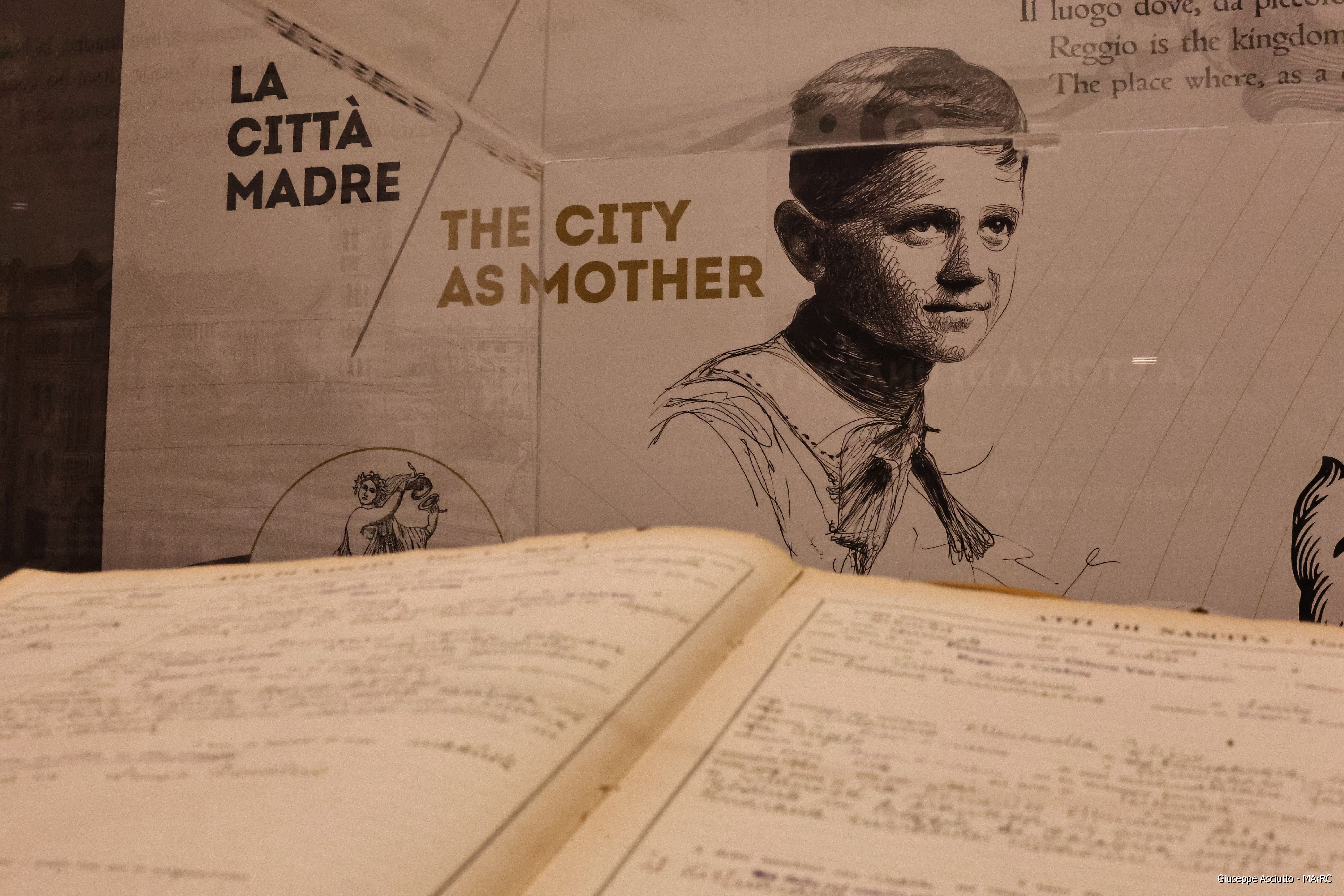 Il percorso è inoltre arricchito da materiali provenienti dall’Archivio di Stato di Reggio Calabria, diretto da Angela Puleio, che ha prestato i registri anagrafici riguardanti la famiglia Versace, ma anche da documenti inediti quali libri, bozzetti, manifesti, cataloghi, appunti, polaroid e interviste, che documentano la costruzione del linguaggio creativo del designer e permettono di approfondire la genesi del suo progetto estetico. Contribuiscono alla lettura dell’opera di Versace le testimonianze dei suoi principali collaboratori: Bruno Gianesi, capo Ufficio Stile e autore di numerosi costumi per il balletto, e Manuela Brambatti, disegnatrice impegnata anche nella Home Collection. Tra gli elementi centrali dell’allestimento figurano una scultura lignea del maestro Marcos Marin, appartenente alla serie “Paraphrase Project” e caratterizzata da tagli di ispirazione OpArt, collocata nella Piazza Orsi, sita all’interno del Museo e un’opera del maestro di origine reggina Natino Chirico, che ha voluto contribuire esponendo una tela dedicata all’amico d’infanzia Gianni Versace, appositamente creata per l’occasione.