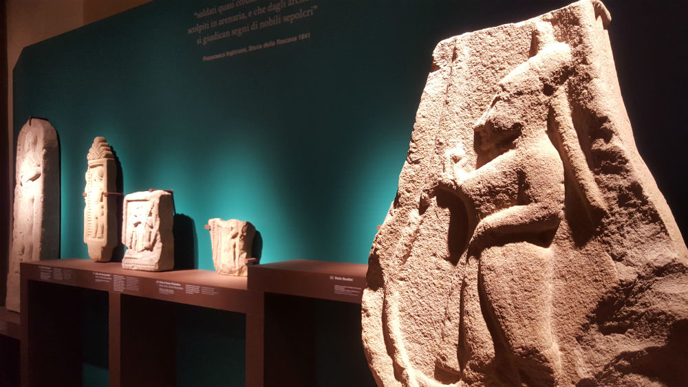 Trenta reperti, alcuni mai visti, una produzione di pregio tra cippi, stele e bronzetti per raccontare una storia ricca di suggestioni, che ricostruisce le lontane radici etrusche di Prato, un tesoro archeologico da Fiesole ad Artimino passando per Gonfienti. La mostra “L’ombra degli Etruschi. Simboli di un popolo fra pianura e collina”, allestita negli spazi a piano terra del museo pratese di Palazzo Pretorio, in programma fino al 30 giugno, è dedicata alle popolazioni etrusche stanziate a Nord del fiume Arno, lungo la direttrice della piana di Firenze-Prato-Pistoia, del Mugello/Val di Sieve e del Montalbano. Una produzione unica. L’allestimento, curato dall’architetto Francesco Procopio, punta a catturare l’attenzione del visitatore evocando suggestioni di altre epoche: un gioco di luci e ombre per esaltare il nucleo dei materiali pratesi (bronzetti e coppa attica) e il profilo austero ed elegante delle “pietre fiesolane”. E per orientare meglio il visitatore in questo viaggio nel tempo e nello spazio c’è una gigantesca mappa che mostra la collocazione geografica dei reperti, ricostruendo al tempo stesso i principali collegamenti etruschi. I monumenti sepolcrali esposti provengono in buona parte dalle collezioni del museo Archeologico di Firenze (come lo straordinario cippo di Settimello o la stele di via di Camporella) oltreché dal museo di Casa Buonarroti di Firenze (stele di Larth Ninie), dal museo Archeologico di Artimino, dal museo di Fiesole, dal museo di Dicomano e dalla Villa Medicea di Cerreto Guidi.