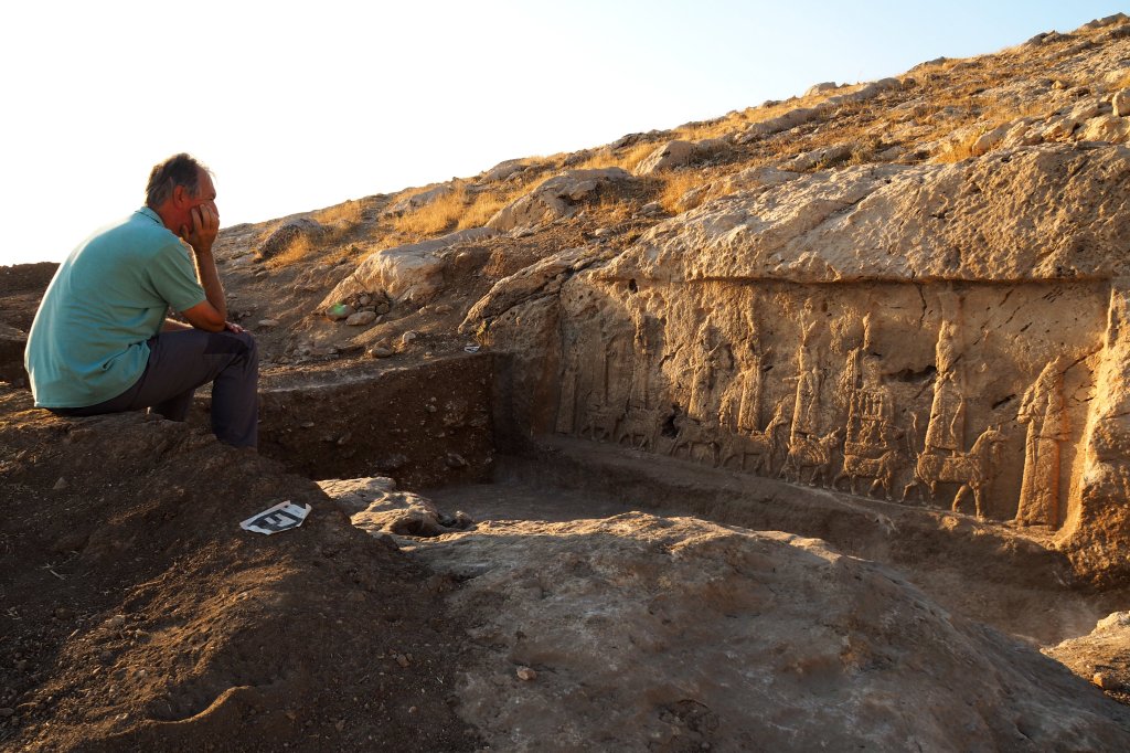 Daniele Morandi Bonacossi, direttore della missione dell’università di Udine, davanti al rilievo 4 scoperto a Faida, nel Kurdistan iracheno (foto Alberto Savioli / LoNAP)