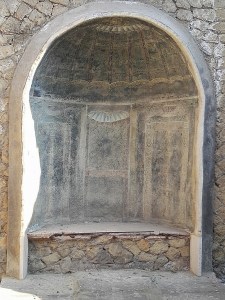 Il raffinato e articolato “edificio” che ricopre il serbatoio della fontana della Casa di Nettuno e Anfitrite a Ercolano (foto Graziano Tavan)