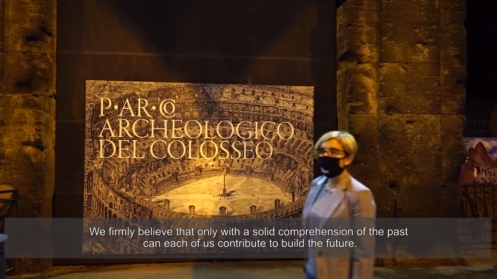 È possibile raccontare i quasi duemila anni di storia del Colosseo in una notte? Una bella sfida lanciata dal Parco archeologico del Colosseo per un collegamento speciale sui canali social per una “Notte dei Musei” virtuale. Sfida raccolta e brillantemente superata da Federica Rinaldi, archeologa responsabile del Colosseo, che ci accompagna per un viaggio, nel tempo, nello spazio del monumento icona mondiale, dall’inaugurazione dell’imperatore Tito nell’80 d.C., alle trasformazioni medievali in fortezza, fino all’isolamento e all’abbandono rispetto al resto della città che hanno alimentato nei secoli bui del Medioevo storie, leggende e superstizioni, le cui tracce sono forse individuabili nei segni graffiti lasciati sui pilastri di travertino. E poi ancora, modello di “architettura” per i grandi Umanisti del Quattrocento, cava di materiali e ancora luogo di culto per volere della Chiesa.