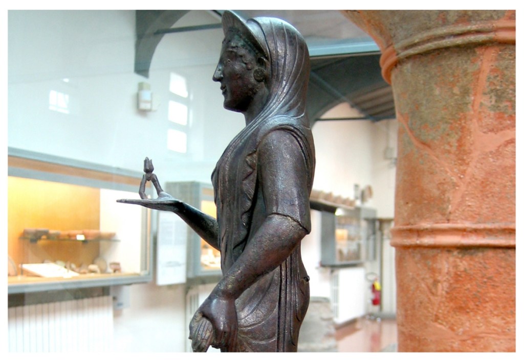 Bronzetti votivi esposti nel museo nazionale Etrusco “Pompeo Aria” di Marzabotto (foto Iago Corazza)