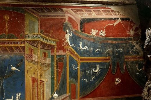 Un affresco parietale della villa Arianna a Castellammare di Stabia (foto parco archeologico di Pompei)