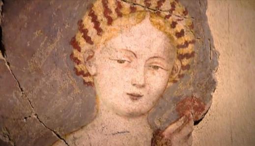 Dama con il garofano: affresco staccato oggi al castello del Buonconsiglio (foto Buonconsiglio)