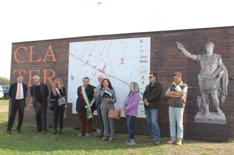 Queste straordinarie novità e rinvenimenti sono stati presentati ufficialmente sul sito della città romana di Claterna, stradello Maggio in località Maggio di Ozzano dell’Emilia (Bo) da Cristina Ambrosini, soprintendente Archeologia, Belle Arti e Paesaggio per la città metropolitana di Bologna e le provincie di Modena, Reggio Emilia e Ferrara (“Un grazie a quanti a Claterna rendono concreta l’archeologia del territorio, dagli amministratori pubblici alle associazioni culturali, dagli studenti ai volontari. Quello di Claterna non è solamente un progetto di ampio respiro che garantisce uno sviluppo di qualità ma un’esperienza che, oltre a ricadute sul piano turistico, aiuta il recupero del senso di comunità”); Saura Sermenghi, presidente dell’associazione culturale “Centro Studi Claterna Giorgio Bardella e Aureliano Dondi” (“La ricerca scientifica ha un’importanza strategica per la salvaguardia del patrimonio culturale”); Luca Lelli, sindaco di Ozzano dell’Emilia (“I lavori del museo Città di Claterna sono in dirittura d’arrivo”); Anna Rita Muzzarelli, assessore a Castel San Pietro Terme (“Fondamentali passione e dedizione condivise da tutti coloro che operano per la valorizzazione dell’antica città romana. Noi in corrispondenza della zona archeologica realizzeremo una piazzetta di sosta lungo la pista ciclabile”); Maurizio Liuti, direttore comunicazione CRIF; Daniele Vacchi, direttore corporate communications gruppo IMA; Marco Mobili, responsabile R&D RENNER Italia; Alessandro Golova Nevsky, delegato dei Rotary Club Bologna, per il coordinamento del progetto di alternanza scuola-lavoro (“Significativi l’impegno e la disponibilità dei tanti studenti dei licei i istituti tecnici di Bologna che hanno aderito al progetto prodigandosi ben oltre i tempi stabiliti nelle operazioni di ricerca, scavo e prima pulitura dei reperti, anticipando fin d’ora la disponibilità a proseguire questa esperienza anche nel 2019”); Claudio Negrelli, responsabile scientifico dell’associazione culturale “Centro Studi Claterna Giorgio Bardella e Aureliano Dondi”.