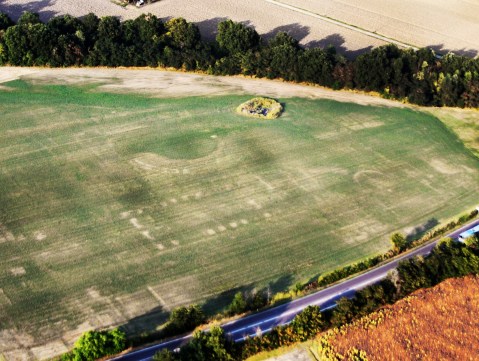 Veduta aerea dell’area archeologica di Claterna nel 2004, prima che iniziassero le campagne di scavo sistematiche