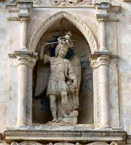 L’immagine di San Michele sulla facciata della chiesa di Monte Santangelo (Foggia)