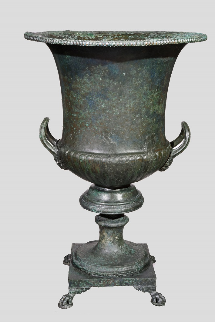 Tuttavia il grande merito degli scavi vesuviani, promossi negli ultimi due decenni della prima metà del XVIII secolo da Carlo III di Borbone nelle città di Pompei, Ercolano e Stabiae, è stato quello di regalarci un inedito spaccato della vita quotidiana degli antichi romani, fino a quel momento pressoché sconosciuta; è in questo senso che la sezione della mostra dedicata agli “Uomini”, ricca anche delle rappresentazioni scultoree e pittoriche delle élites cittadine, assume particolare rilevanza. Dell’impressionante mole di oggetti d’uso comune riemersi a Pompei – crateri in bronzo, suppellettili in vetro e ceramica, pentole e padelle – sono stati selezionati per la mostra di San Pietroburgo esemplari di grande interesse, suddivisi per tipologia e materiali, che consentono di ricostruire le usanze, i commerci, le attività artigianali e quelle quotidiane: dall’educazione alla tavola. Un braciere dalla terme Stabiane ormai in disuso, uno scaldaliquidi in bronzo dalla Villa di Arianna di Stabia, con rubinetto a testa di leone e tre cigni ad ali spiegate sul bordo del fornello, alti candelabri per illuminare i triclini o un cratere come quello di Giulio Polibio ageminato con effetti policromi; così come la bellissima cassaforte in ferro e bronzo con complessi e ingegneristici sistemi di chiusura, posta solitamente nell’atrio, lì dove il padrone di casa presentava se stesso, e – ancora – tavoli di marmo riccamente decorati (bellissimo quello prestato dal parco archeologico di Pompei con due animali fantastici) illustrano tanti aspetti degli usi pompeiani.