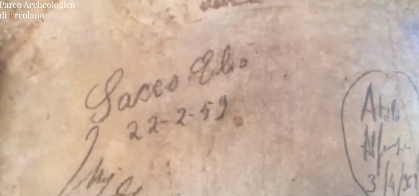 “Visitando questo ambiente notiamo anche alcuni dettagli che ci fanno capire quanto sia cambiata la sensibilità per chi frequentava il sito e anche per chi lo gestiva. Infatti su questa fascia che è tutta di restauro – si tratta di intonaco moderno – vediamo che i visitatori a partire dal 1959 lasciavano le loro firme. Queste firme arrivano fino al 1992. Dopodiché la direzione degli scavi cambiò completamente atteggiamento e cominciò a impedire che avvenissero queste pratiche. Si tratta di pratiche che noi oggi non consentiamo più e speriamo che tutti i nostri visitatori si affidino ora ai social media: è quella la nostra bacheca – conclude Sirano – per poter lasciare un messaggio di speranza, per lasciare un messaggio di amore verso questo sito, che è quello che noi dobbiamo condividere”.
