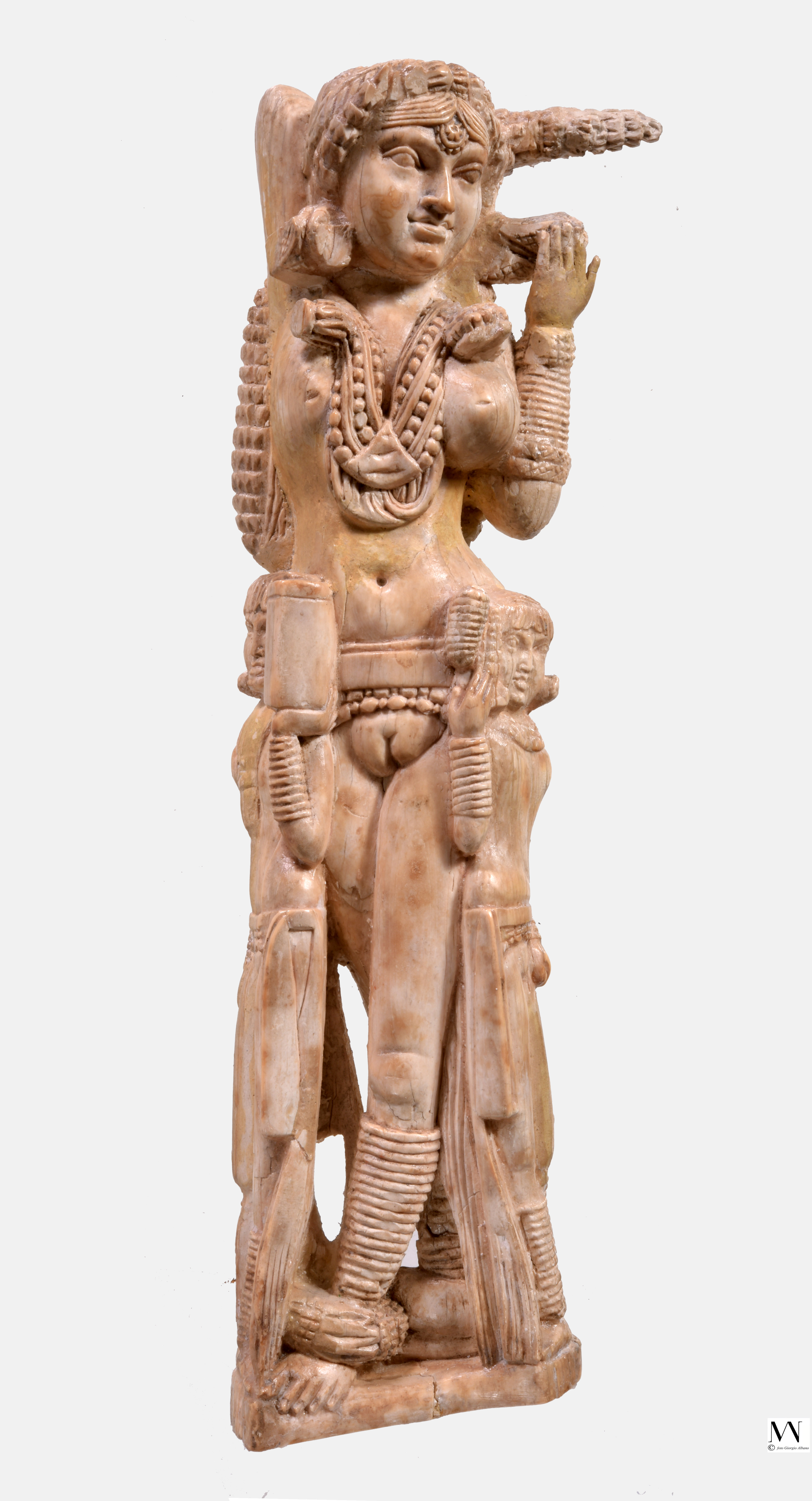 UNA TESTA FEMMINILE DA ORVIETO (ARIANNA?) La testa, che costituisce una scultura da collegare a una struttura architettonica come suggerisce la zeppa destinata ad imperniare il pezzo a parete, fu rinvenuta prima del 1893 dall’ingegnere Riccardo Mancini. Egli la dice proveniente da una necropoli di Orvieto. Ė stato ipotizzato anche che fosse da riferire alla decorazione scultorea di una porta urbica. La sua eccezionalità risiede nell’iconografia, negli elementi antiquariali, nella peculiare cifra stilistica e nel pregio della sua alta qualità formale dagli esiti estetici ed espressivi suggestivi. Tra i suoi capelli è stato riconosciuto uno dei simboli dionisiaci più comuni: la corona di edera. L’individuazione di un elemento tanto qualificante dell’ambito dionisiaco, coincide pienamente con la proposta di Giovanni Colonna, secondo il quale il nostro personaggio può identificarsi con una Menade (forse Arianna?). La scultura è stata ascritta al primo Ellenismo, segnatamente per quanto riguarda la scultura lapidea funeraria, dove, però, non trova facili confronti stilistico-formali. Il suo artefice si mostra profondo conoscitore dei modelli greci e latore di richiami tardo-classici, per i quali è stato suggerito il nome dello scultore Skopas. La cronologia è collocabile agli inizi del III sec. a.C. e quindi pochi decenni prima della fine di Velzna (Volsinii, in lingua latina), l’ultima città-stato etrusca a cadere in mano romana
