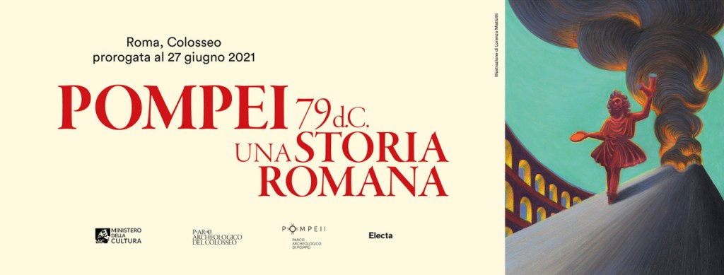 Domenica 27 giugno 2021 si è chiusa al Colosseo la grande mostra “Pompei 79 d.C. Una storia romana”, ideata e curata da Mario Torelli, grande archeologo recentemente scomparso. La mostra, curata nel progetto di allestimento e nella grafica da Maurizio di Puolo, è stata promossa dal Parco archeologico del Colosseo con l’organizzazione di Electa editore, e si è avvalsa della collaborazione scientifica del parco archeologico di Pompei e del museo Archeologico nazionale di Napoli. Per l’occasione il parco archeologico di Pompei ha presentato un video racconto, realizzato da Mario Cristofaro, che ripercorre tutte le sezioni e le opere attraverso le quali si è provato a restituire in maniera compiuta il complesso dialogo che lega le due realtà più famose dell’archeologia italiana, Roma e Pompei: vedi qui il video Facebook