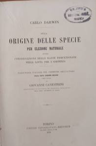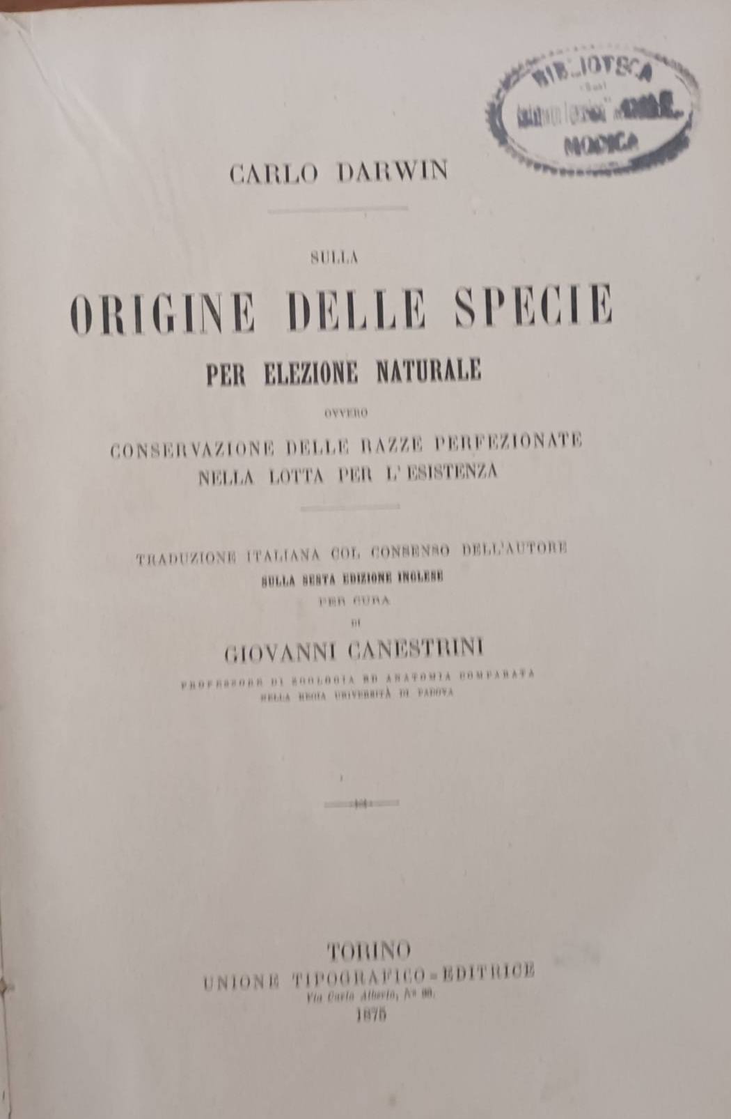 La copia de “L’origine della specie” di Charles Darwin conservata nella Biblioteca di Modica (foto biblioteca modica)