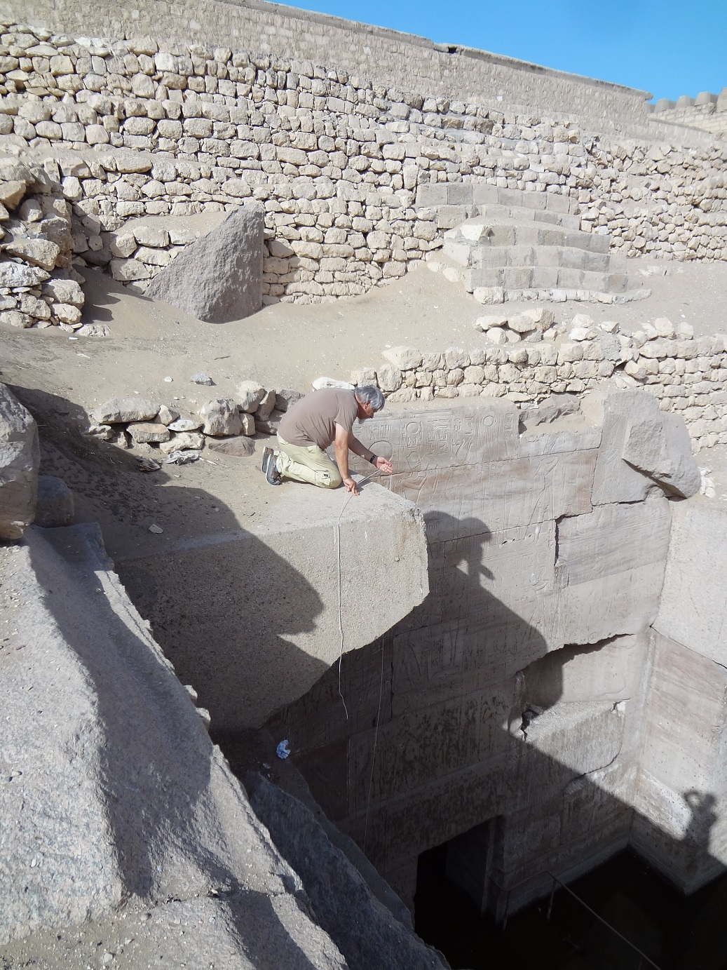 In questi anni, tra il 2003 e il 2005, Paolo Renier realizza la sua opera più preziosa: la ricognizione fotografica a 360 gradi del soffitto astronomico dell’Osireion. “Riuscii a entrare nella Stanza del Sarcofago con grande difficoltà”, racconta, ancora emozionato, “rischiando anche la vita, perché si camminava in un acquitrino putrido pieno di larve pericolose e su un pavimento irregolare, scivoloso e pieno di buche, purtroppo invisibili per la scarsa illuminazione e l’acqua melmosa. Ma sentivo che dovevo farcela, perché umidità e pipistrelli, insieme all’incuria dell’uomo, stavano minando irrimediabilmente l’integrità della stanza segreta del faraone Seti I”. E continua: “Feci varie riprese del soffitto, con i suoi bellissimi rilievi che raffigurano due scene della dea Nut”. È qui che incontra un altro egittologo, James Westerman, incaricato dal governo egiziano di studiare la provenienza e i livelli in continuo movimento dell’acqua ancora presente nel canale attorno all’isola centrale dell’Osireion. Un modo per cercare di capire i segreti di questo tempio, molto particolare, un unicum, con dieci pilastri in granito rosa di 80-90 tonnellate l’uno e un canale attorno all’isola centrale profondo una quindicina di metri. “Westerman con le sue ricerche geologiche”, interviene Renier, “è riuscito a definire quando fu costruito il tempio dell’Osireion, datandolo almeno al 4000/5000 a.C., quindi prima dei faraoni. Mi piace pensare che Seti I abbia scoperto e capito l’importanza di questo monumento e abbia deciso di costruire qui il suo tempio, inglobando l’Osireion, probabilmente per riti straordinari, legati probabilmente ai livelli della sua acqua purificatrice. Non dimentichiamo che l’Osireion è così chiamato perché gli antichi egizi ritenevano che custodisse la testa di Osiride”.