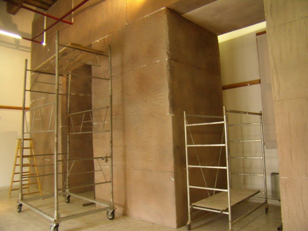 Cantiere aperto nell’atrio di Palazzo Sarcinelli: si sta ricostruendo l’angolo nord-orientale della Camera centrale dell’Osireion di Abido