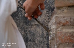 Terza sezione: “Roma vs Pompei”. Obsidio. Nel corso della dura e sanguinosa Guerra Sociale, che vide Roma opporsi agli alleati Italici (91-89 a.C.), Pompei aderì alla coalizione degli insorti e le fonti antiche testimoniano l’intervento diretto di Silla contro la città nell’89 a.C. L’archeologia ci mostra i segni di questo assedio: lungo il settore Nord-Ovest delle mura sono ancora visibili i fori lasciati dai proiettili lanciati dalle catapulte. Una preziosa serie di iscrizioni in lingua osca documenta il sistema di difesa messo in atto dai pompeiani: le milizie scelte erano disposte in difesa di singoli settori delle mura, gli ausiliari raggruppati presso le principali aree pubbliche e lungo i percorsi indicati con il nome delle antiche strade di Pompei, fra le quali si ricordano la víu sarinu (Via Salaria) e la víu mefíu (Via Mediana).