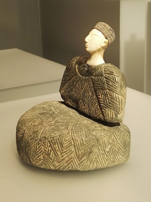 “Dama dell’Oxus” seduta (2200-1800 a.C.) dall’Iran orientale/Asia centrale, tipica della Civiltà dell’Oxus, conservata nella collezione Sofer di Londra (foto Graziano Tavan)