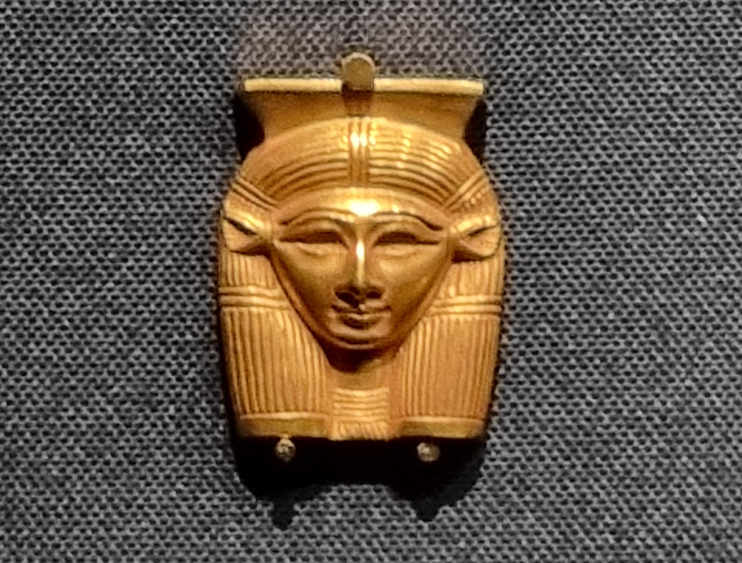 Pendente in lapislazzuli e oro col volto di Hathor (XXII dinastia) dalla Tomba del principe Sheshonq, figlio di Osorkon II, a Saqqara, conservato al museo del Cairo (foto graziano tavan)