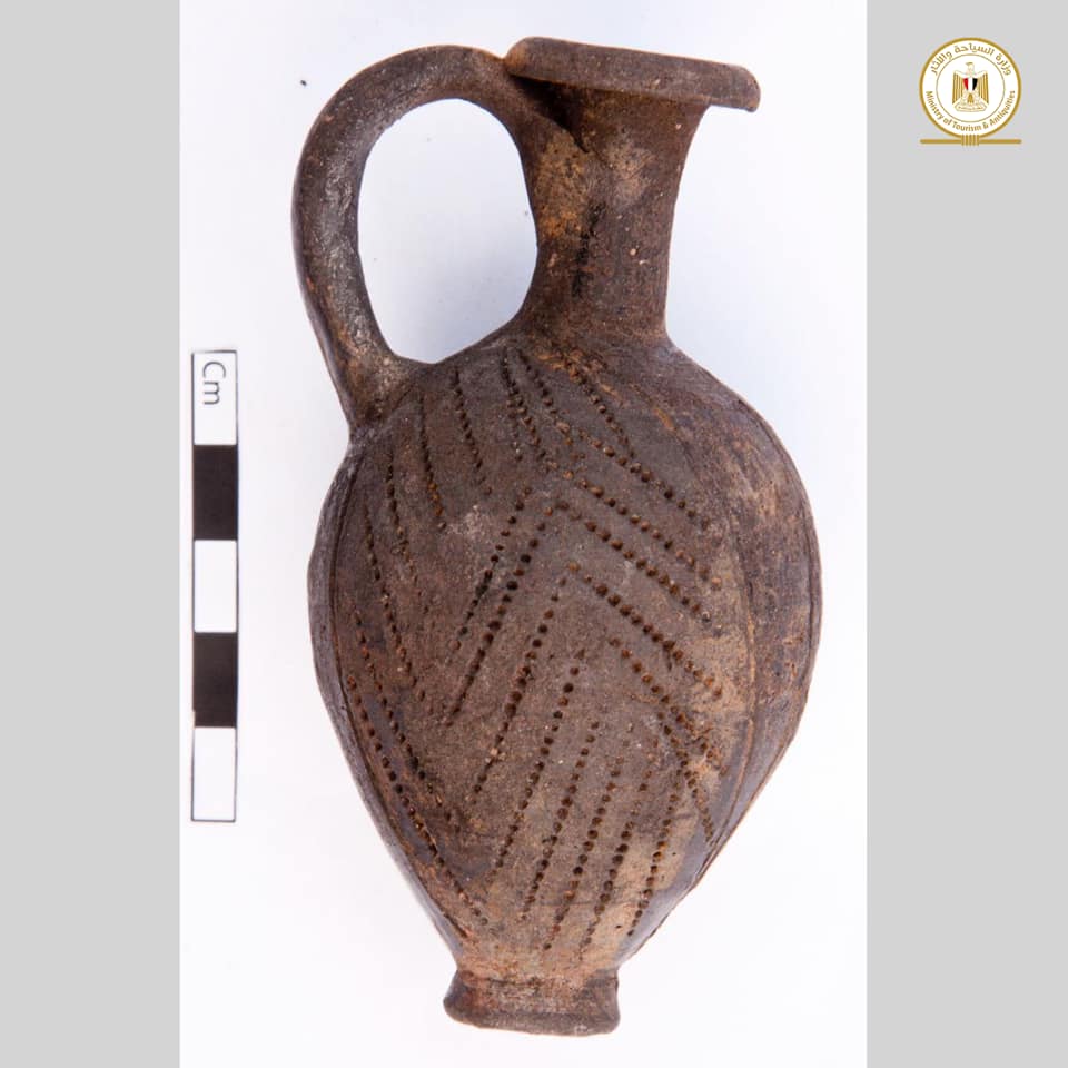 Tombe di Naqada III. “Le cinque tombe, che risalgono al periodo di Naqada III, sono anch’esse fosse di forma ovale scavate nello strato sabbioso dell’isola deltizia”, ha precisato sempre Ayman Ashmawi, “comprese due tombe che avevano i lati, il fondo e il tetto, coperti da uno strato di argilla. All’interno delle fosse, la missione ha trovato un gruppo di arredi funerari caratteristici di questo periodo, vasi cilindrici e triangolari, oltre alla ciotola del kohl, la cui superficie era decorata con disegni e forme geometriche”.