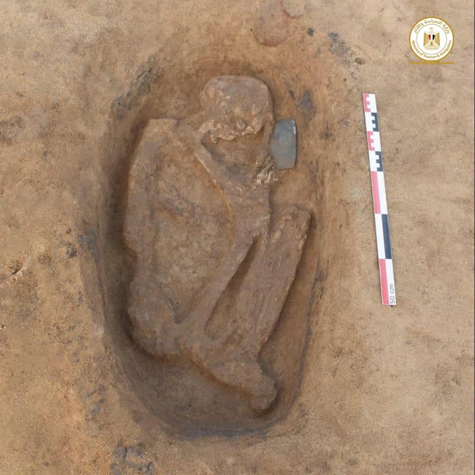 Tombe della civiltà di Buto. “Le 68 tombe”, ha aggiunto Ayman Ashmawi, capo del settore delle antichità egizie dello Sca, “sono fosse di forma ovale scavate nello strato sabbioso dell’isola deltizia e contengono persone sepolte in una posizione accovacciata, la maggior parte delle quali giaceva sul lato sinistro con la testa rivolta verso Ovest. Sono state anche scoperti i resti di un bambino sepolto all’interno di un vaso di argilla del periodo Bhutto 2, insieme a un piccolo vaso di argilla sferico”.