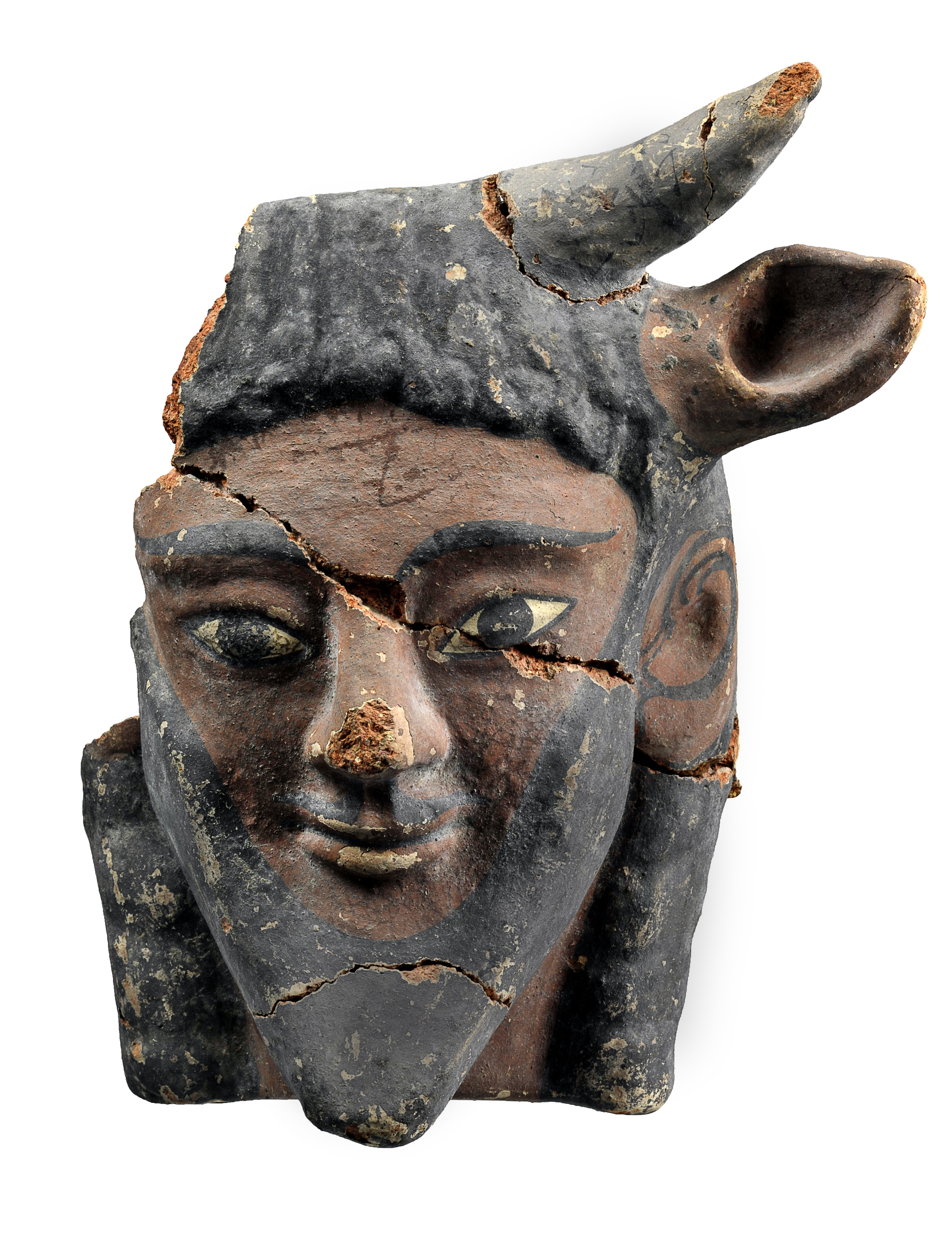 Antefissa con la testa di Acheoloo proveniente da Cerveteri, conservata al museo di Villa Giulia, ed esposto alla mostra di Bologna “Etruschi. Viaggio nelle terre dei Rasna” (foto Villa Giulia)