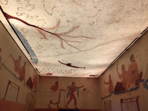 Le lastre tombali dipinte provenienti dal parco archeologico di Paestum in mostra a Chengdu (foto parco archeologico Paestum)