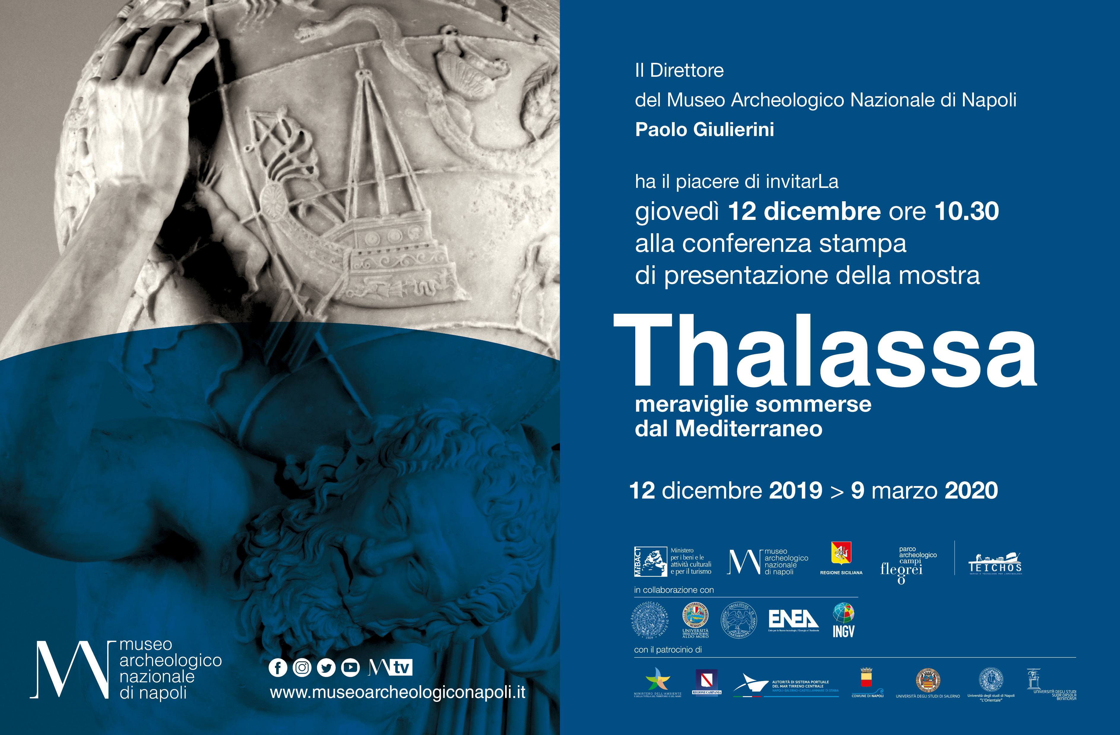 Mostra “Thalassa” virtuale. Da venerdì 24 aprile 2020 si salperà virtualmente alla scoperta di “Thalassa, meraviglie sommerse dal Mediterraneo”: la mostra, a cura di Paolo Giulierini, Salvatore Agizza, Luigi Fozzati, Sebastiano Tusa e Valeria Li Vigni, sarà prorogata online per i fan e follower di Facebook e Instagram. Grazie alla riproposizione web dei video della sezione “Acque profonde”, sarà possibile seguire, come se fossimo nella profondità degli abissi, le più importanti campagne di scavo subacqueo nel Mare Nostrum; non mancheranno brevi percorsi con mini-documentari, realizzati dai curatori, per scoprire i capolavori dell’esposizione.