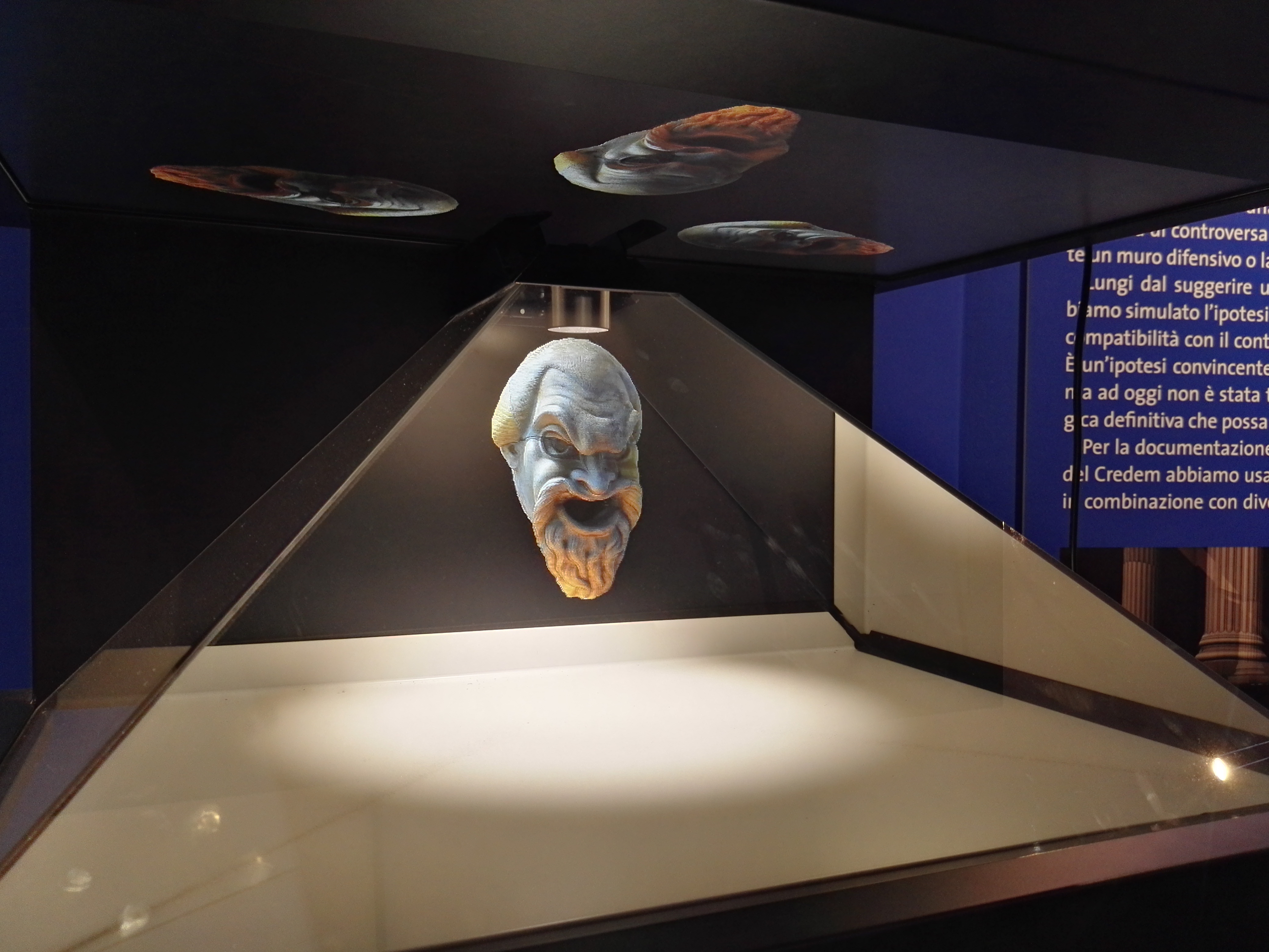 È qui infatti che si aprono il chiostro dei marmi romani (allestito in forma di giardino archeologico agli inizi del XX Secolo per ospitare i numerosi reperti architettonici romani rinvenuti nella necropoli di San Maurizio) e il portico dei marmi, dove sono esposti in sequenza i monumenti funerari riportati alla luce dal XV Secolo ad oggi fra Villa Ospizio e San Maurizio, vera e propria Via Emilia dei defunti, che ogni viandante avrebbe percorso in arrivo o in uscita da Regium Lepidi. E non dimentichiamo l’installazione in “realtà aumentata”, predisposta dalla Duke University, della ricostruzione della città romana Regium Lepidi 3D, la cui tecnologia è stata implementata, grazie al sostegno del Lions Club Reggio Emilia Host, proprio in occasione dell’avvio del progetto “2200 anni lungo la Via Emilia”. La “Sala Regium Lepidi 3D”, è stata infatti inaugurata l’8 aprile 2017 per dar vita a un museo virtuale permanente all’insegna della Cyber Archeologia. Oggi come allora, immersi nell’architettura dell’antica Regium Lepidi, quando i romani ne percorrevano le strade in toga e calzari, si può vivere un’esperienza unica, che consente una full immersion nella città antica grazie a sofisticate apparecchiature all’avanguardia come i caschi immersivi Oculus Rift, le postazioni olografiche di Z-space, le proiezioni 3D di Dreamoc, i QR code in realtà aumentata e la visualizzazione stereo-immersiva del paesaggio archeologico.