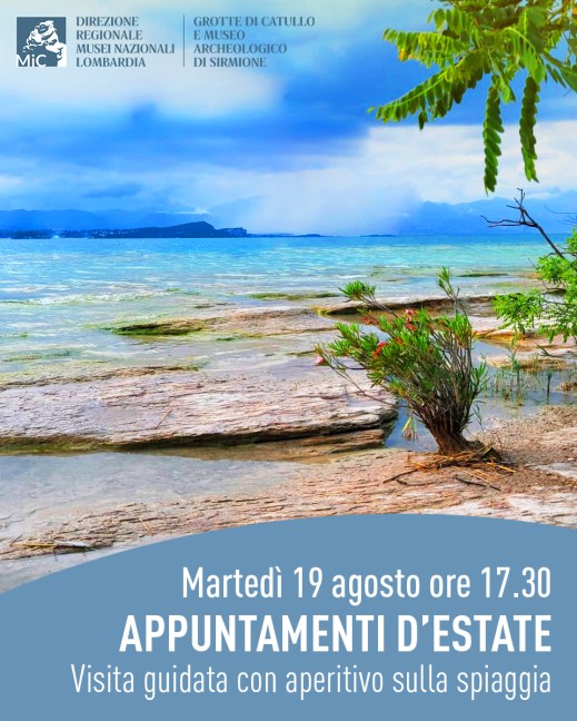 Per “Appuntamenti d’Estate” alle Grotte di Catullo e al museo Archeologico nazionale di Sirmione (Bs), martedì 19 agosto 2025, alle 17.30, visita tematica alle Grotte di Catullo nella magnifica cornice naturale della penisola di Sirmione con l’archeologa Lucia Notorio che condurrà alla visita a tema “Giochi e svaghi nell’antica Roma”. A conclusione delal visita, un momento di convivialità cn aperitivo al Bar del Lido, affacciato sulla splendida spiaggia Jamaica a un prezzo simbolico di 2 euro. Prenotazione obbligatoria: tel. 030 916157, drm-lom.grottedicatullo@cultura.gov.it