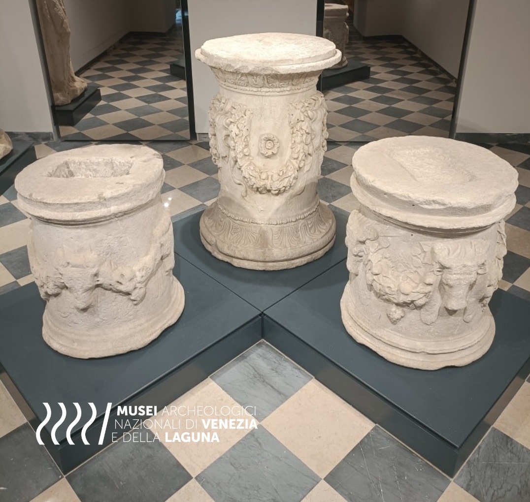 Altari funerari di provenienza ellenistica (II secolo d.C) conservati nella sala adiacente alla biglietteria del museo Archeologico nazionale di Venezia (foto manvelag)