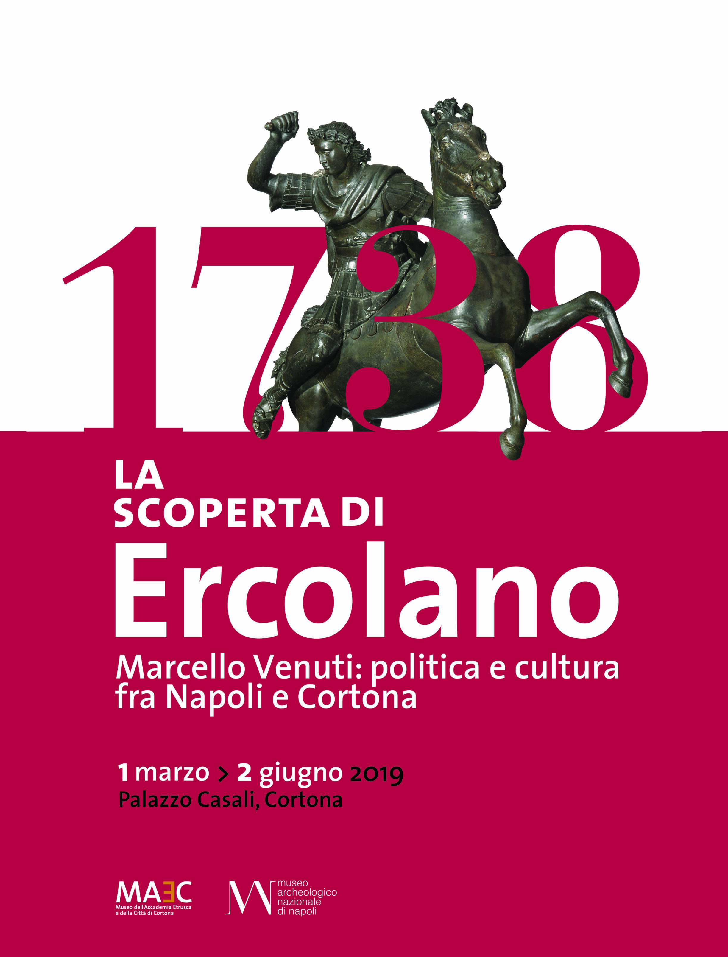 La locandina della mostra “1738. La scoperta di Ercolano. Marcello Venuti: politica e cultura fra Napoli e Cortona” aperta al Maec dal 1° marzo al 2 giugno 2019
