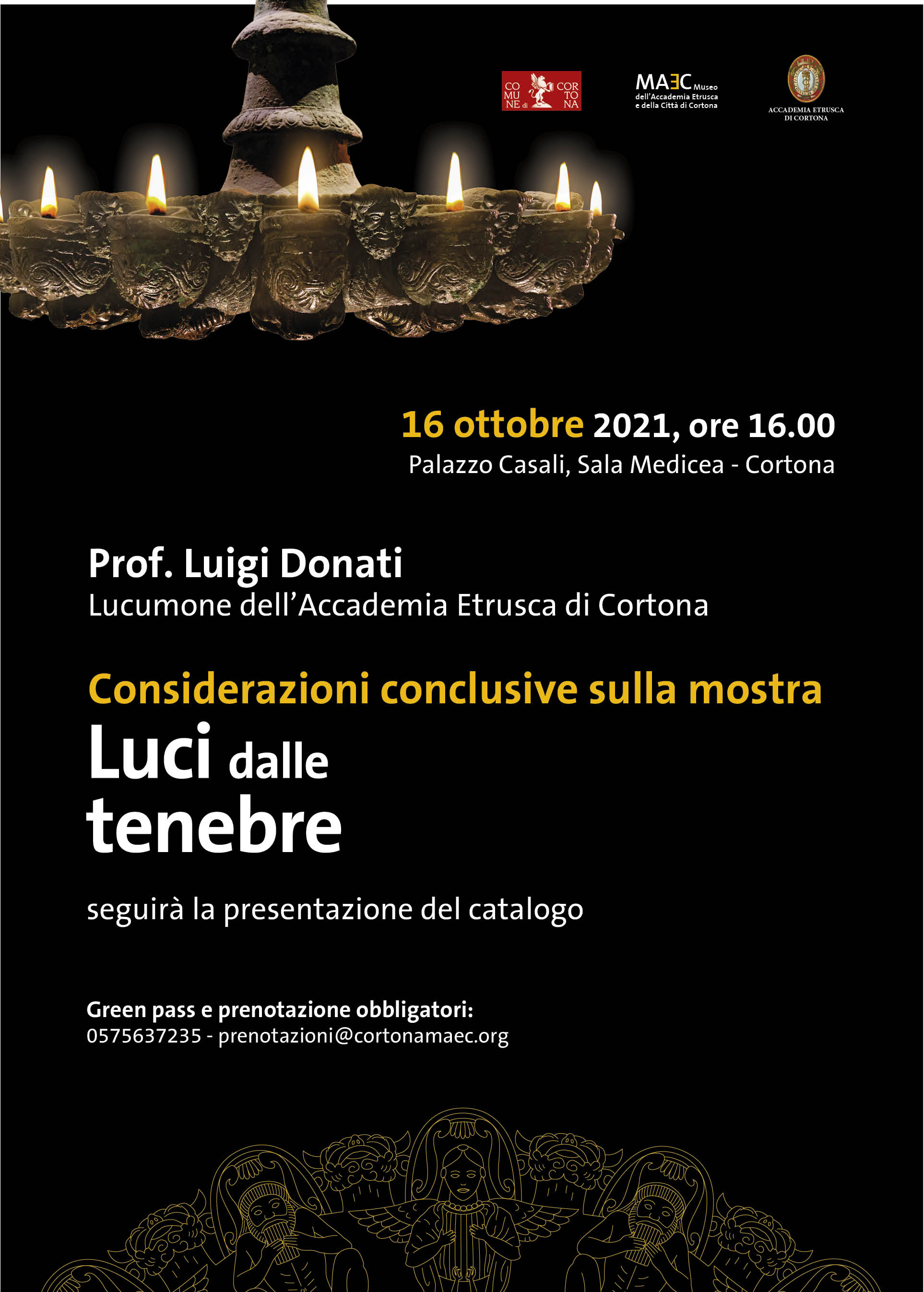Cortona. A un mese dalla chiusura della mostra “Luci dalle tenebre. Dai lumi degli Etruschi ai bagliori di Pompei” al Maec, conferenza di Luigi Donati con considerazioni conclusive sulla mostra e presentazione del catalogo