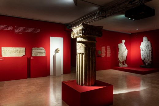 Il suggestivo percorso espositivo della mostra “Aquileia 2.200. Porta di Roma verso i Balcani e l’Oriente” all’Ara Pacis di Roma (foto Leonardo Becuzzi)