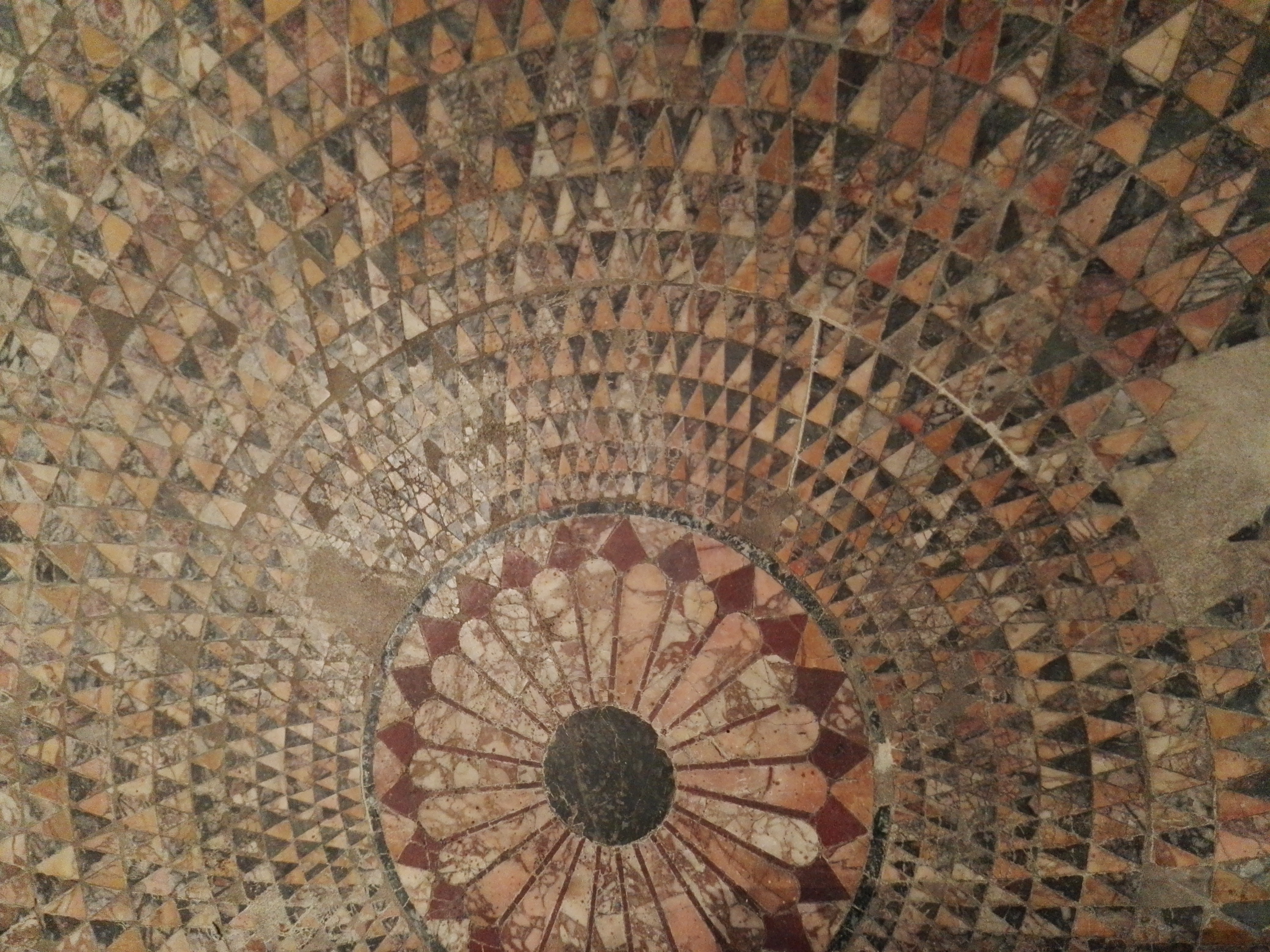 Basilica di Massenzio, navata settentrionale: il nicchione centrale, opposto al nuovo ingresso, fu dotato di un’ abside sul fondo, coperta da una semi-cupola e con le pareti arricchite da nicchie destinate ad ospitare statue su due ordini. Sul fondo dell’abside era realizzato un podio in muratura destinato ad ospitare il tribunal dei giudici (foto PArCo)