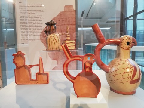 “Di queste culture abbiamo voluto offrire una visione che va oltre l’ammirazione del livello artistico raggiunto nell’arte ceramica”, sottolineano Aimi e Guarnotta. “Siamo alle soglie del V Centenario della Conquista del Messico e ci sembra giunto il momento di condividere una nuova lettura di quell’evento, che nasca dalla visione dei vinti, contraddicendo così molti stereotipi sull’antica America. E a proposito di stereotipi, vogliamo sottolineare che la nostra mostra mette in evidenza un dato nuovo e di grande attualità: la condizione della donna in alcune società guerriere e apparentemente maschiliste (Aztechi, Costa Nord del Perù) era migliore di quella dell’Europa del tempo”.