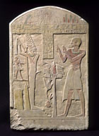 Il Medio Regno – il dio Osiride e una nuova prospettiva di vita ultraterrena La fine dell’Antico Regno e il periodo di disgregazione politica che ne segue determinano grandi cambiamenti nella società egiziana, che riconosce al singolo individuo una maggiore responsabilità del proprio destino, anche ultraterreno. Ogni egiziano, in grado di farsi costruire una tomba con adeguato corredo funerario, può ora aspirare a una vita eterna. Il dio Osiride, signore dell’oltretomba, diviene la divinità più popolare del Paese. Dal suo tempio ad Abido, uno dei più importanti luoghi di culto dell’Egitto, provengono molte stele ora a Leiden e a Bologna. Tra cui quella di Aku, il maggiordomo della divina offerta, che la dedica a Min-Hor-Nekhbet, la forma del dio itifallico Min adorata nella città di Abido. La preghiera che Aku rivolge al dio racconta di un’esistenza ultraterrena in un mondo concepito come tripartito: in cielo dove il defunto si trasfigura in stella, in terra dove la sepoltura è luogo fondamentale del passaggio dalla vita alla morte e in oltretomba dove Osiride concede al defunto la vita eterna.
