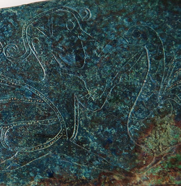Particolare della decorazione della situla di Montebelluna in fase di restauro: cervo con corna ramificate (foto stefano buson)