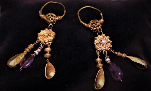 riferibili a una donna di altissimo rango identificabile e nota soprattutto per la presenza di questi orecchini in oro e ametista ma anche per una giarrettiera, un reggicalze a doppio pendente che rimanda a una cultura germanica sicuramente, ma anche a contatti con un mondo transalpino. Questa sepoltura in realtà è il sunto di tutta una serie di elementi non solo pertinenti alla cultura germanica – e mi riferisco a quella non esclusivamente longobarda -, ma denota anche contatti con il mondo bizantino, con un’oreficeria di pregio, di lusso e di prestigio”.