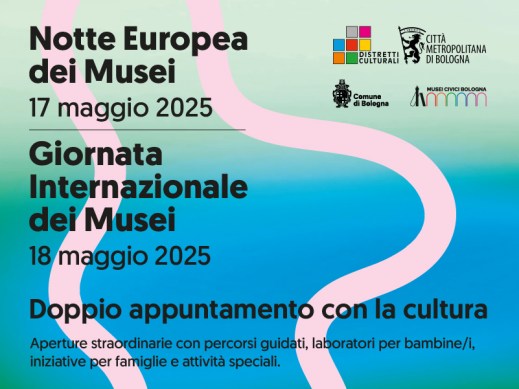 Sabato 17 maggio 2025 torna la Notte Europea dei Musei, che promuove la conoscenza del patrimonio e dell’identità culturale nazionale ed europea invitando i musei ad aprire le loro porte oltre gli orari di apertura ordinari, con ingresso gratuito o al costo simbolico di 1 euro. Per il terzo anno consecutivo, il territorio di Bologna conferma la partecipazione alla manifestazione con una progettualità e una comunicazione condivise, con il coordinamento del Settore Musei Civici Bologna e dalla Città metropolitana di Bologna, per valorizzare la ricchezza e l’ampiezza dell’offerta culturale in un’ottica di rafforzamento del sistema museale coordinato e integrato nelle sue diverse articolazioni. Sono 41 i musei e gli spazi culturali aderenti, la maggior parte dei quali sono aperti con ingresso gratuito o al costo di simbolico di 1 euro (fatte salve le gratuità per legge), a partire dalla fascia di apertura straordinaria serale, tra i 12 Comuni di Anzola dell’Emilia, Bologna, Budrio, Castenaso, Crevalcore, Imola, Pianoro, San Giovanni in Persiceto, San Lazzaro di Savena, San Pietro in Casale, Valsamoggia e Vergato. E 74 sono gli appuntamenti proposti al pubblico di adulti e bambine e bambini, tra aperture straordinarie, speciali visite guidate, conferenze, letture e degustazioni.